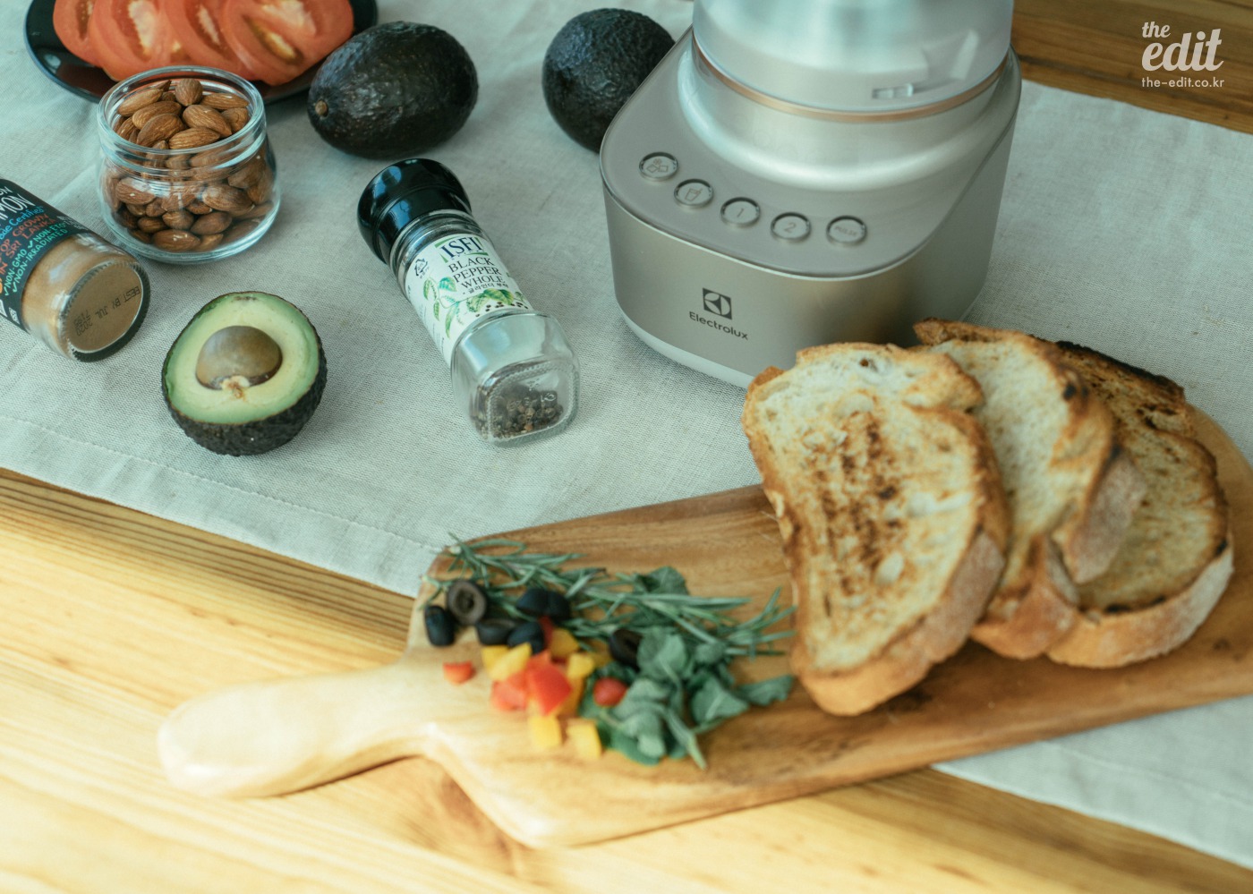 단순히 블렌더로 주스만 만들어 먹을 수 있다고 생각하는 사람들이라면 이 기능을 잘 사용해 과카몰레나 칠리 소스 그 무엇이든 적당히 갈아 잘 구운 빵위에 턱턱 얹어 아주 훌륭한 오픈 샌드위치를 만들 수 있다. 내가 만들었지만 샌드위치 전문점 못지 않은 맛과 색이다. 촬영이 끝나기 무섭게 에디터H가 탐욕스럽게 빼앗아 먹었다.