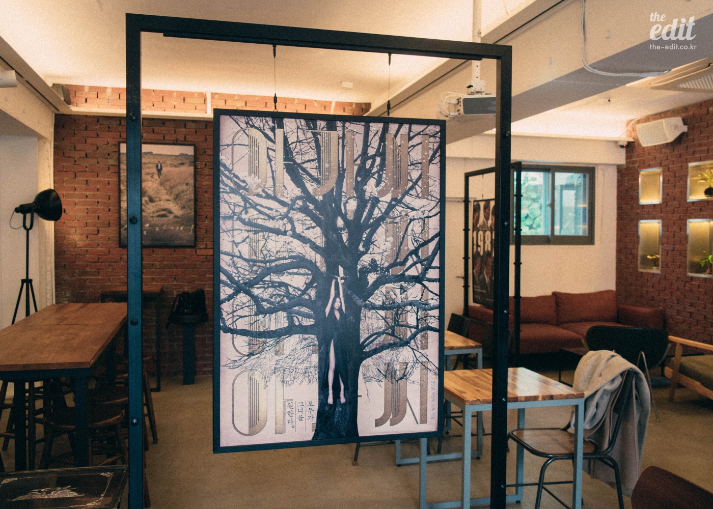 김성우 대표는 신촌살롱은 전시만을 위한 공간이 아니라고 설명했다. 강연도 할 수 있고 커피도 파는 무엇이든 될 수 있는 공간이라고 했다. 참고로 김성우 대표는 영화 <아저씨>의 프로듀서였고 최근에는 <미씽: 사라진 여자>를 기획했다. 자, 이제 본격적으로 공간에 대한 이야기를 할까. 여긴 1층과 지하 1층으로 구성되어 있는데, 우선 1층부터 둘러보자. 현관문을 열고 들어가자마자 마주치는 포스터는 <아가씨>.