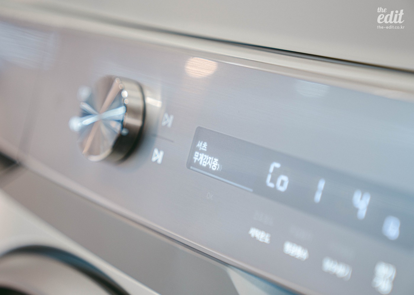 내가 이상할 정도로 편리함을 느꼈던 이유가 한 가지 더 있다. 분명히 선 상태로 아래를 내려다보며 세탁기를 조작하는데 불편하거나 어색하다는 느낌이 없다. 왜냐하면 패널을 잘 확인하기 위해 몸을 숙일 필요가 없기 때문이다. 70도로 기울어진 패널 덕분에 서서 조작을 해도 화면이 보이는 각도가 안정적이고 편안하다.
