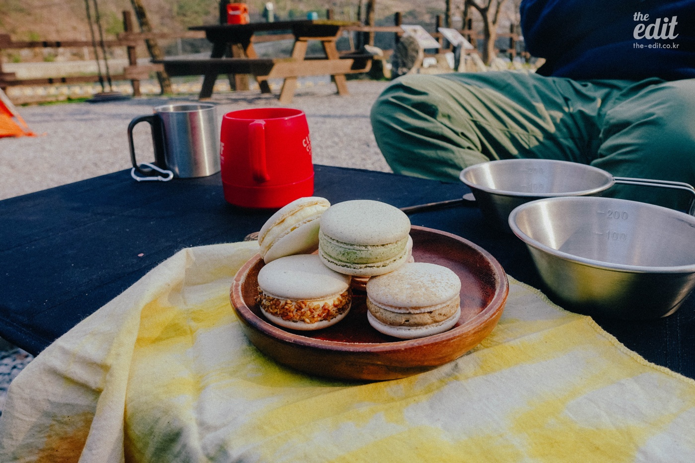 다섯 개의 마카롱은 다음과 같다. 야생 오미자, 곰취 그리고 정선 서리태와 봉평 메밀, 부모님이 손수 키운 옥수수. 찰옥수수 마카롱엔 옥수수 알갱이가 박혀있고, 메밀 마카롱엔 구운 메밀이 붙어 있어 오독오독 씹는 재미가 좋다. 오미자 마카롱은 딸기 요거트 마냥 상큼하고, 서리태 마카롱은 그윽하고, 고소하다. 그중에서도 특이한 것은 곰취 마카롱. 이탈리아식으로 바삭, 쫄깃하게 구운 코끄에 프랑스 고메버터와 서울우유 제품을 섞어 만든 필링에 곰취의 풀 내음과 쓴 맛이 잘 표현됐다. 다시 사 먹어 볼 만한 맛이다.