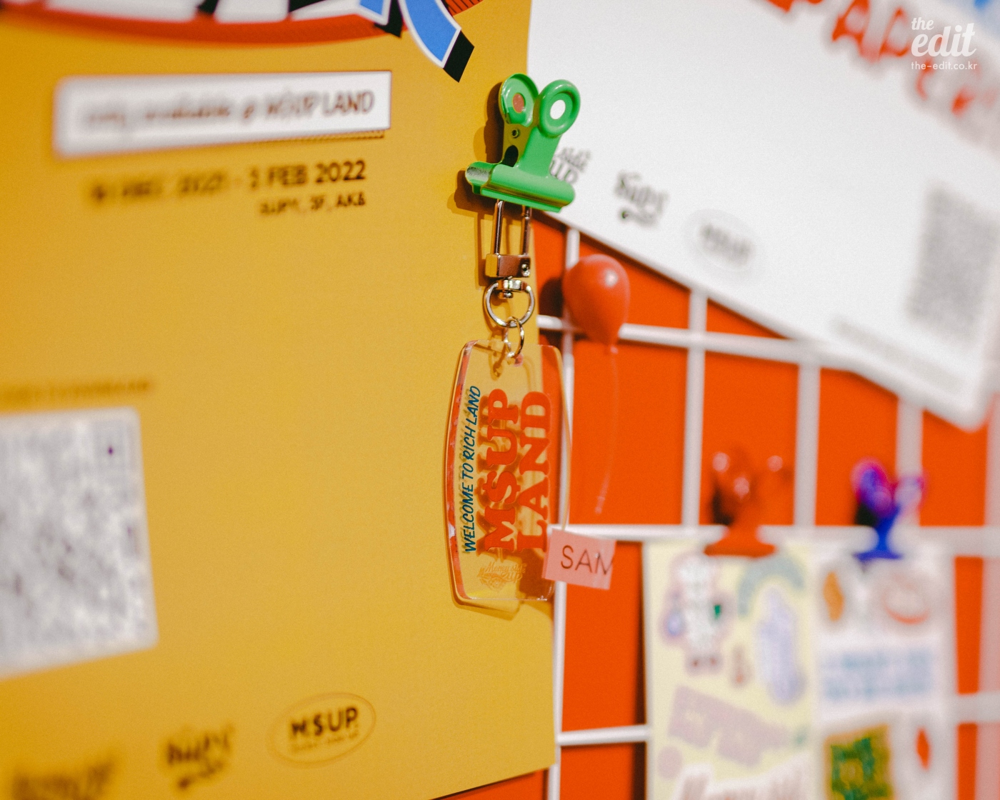 오시는 모든 분들에게 행운의 M$UP LAND 지폐와 보스 얼굴이 그려진 귀여운 스티커를 나눠드려요. 곳곳에 부착되어 있는 포스터의 QR코드를 스캔하시면 근사한 스마트폰 배경화면 4종을 다운받으실 수 있어요.