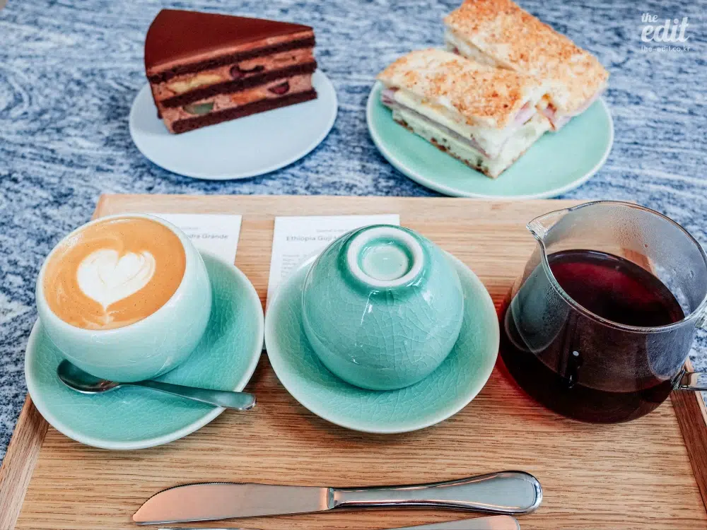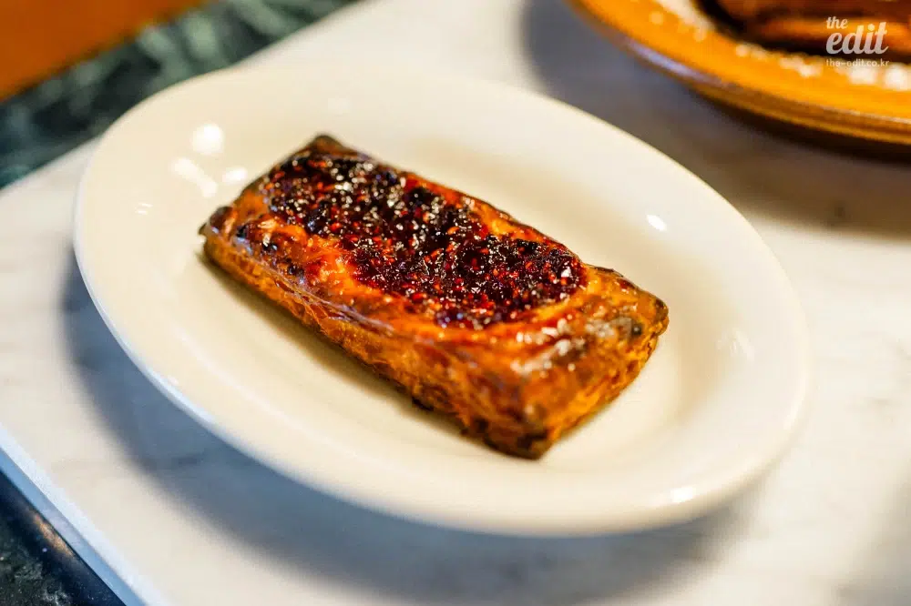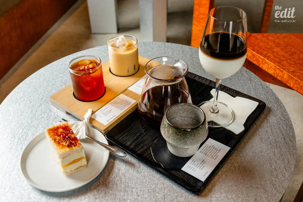 매장의 추천 커피는 브루잉 커피와 밀크브루커피. 이번에는 2022년 세계 로스팅 대회 챔피언 카펠릭스의 콜롬비아 게이샤 아이스 브루잉 커피를 마셨다. 마치 레몬그라스와 허브가 커피 안에서 폭죽처럼 터지는 느낌이었다. 이외에도 밀크티에서 영감을 받아 따듯한 우유에 브루잉한 밀크브루커피는 카페라테와 다른, 깔끔한 질감이 신선하다.