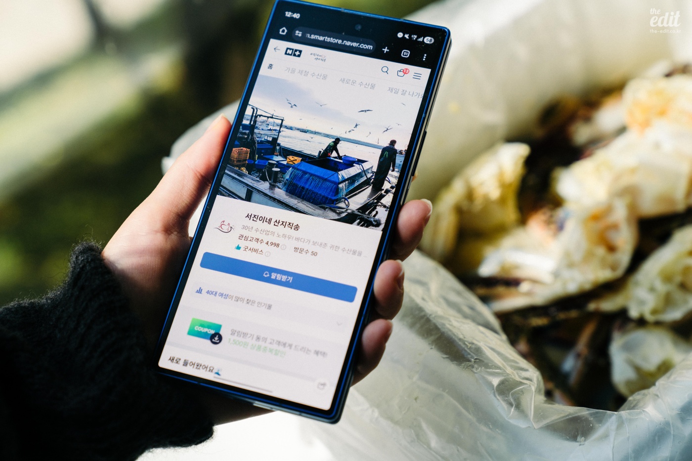 포장 박스를 열면, “이게 진짜 산지 직송이구나”라는 말이 절로 나올 정도로 바다 향이포항이나 태안에 가지 않아도, 그 지역의 어시장에서 막 건져 올린 듯한 싱싱함이 그대로 살아 있기 때문에. 서해안에서 잡은 꽃게를 이틀 만에 받아서 먹을 수 있다니, 만들어 먹으면서도 신기했다. 꽃게탕을 요리한 날에는 에디터들끼리 둘러 앉아 점심을 먹었다. 지나가는 동료들이 지나가며 한 마디씩 했다. “냄새 미쳤다… 여기 서천이에요?” 스토어 링크는 [여기]. 링크를 누르거나 네이버플러스 스토어에서 ‘서진이네 산지직송’을 검색해도 된다.