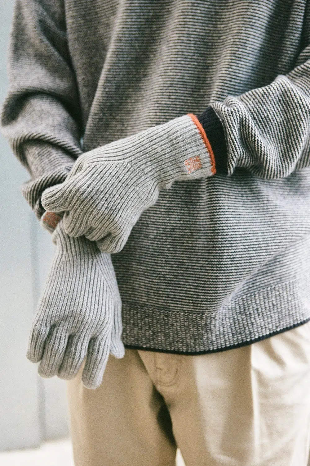 추위를 느끼면 일단 어깨가 움츠러들고 턱이 당겨진다. 목이 찬 공기에 노출되면 단순히 목에서 그치지 않고 상반신 전체가 추워지는 것을 본능적으로 알고 있기 때문이다. 반대로 목도리로 목만 감싸도 추위에 대항할 온기가 든든하게 생긴다. 그런 의미에서 방한용품의 기본은 목도리라 할 수 있다. 하지만 목을 한가득 감싼 목도리는 불편하다. 고개를 움직이기 어렵고, 입에 목도리 털이 들어가는 것만 같으니까. 그럴 때는 가볍게 짠 면 소재 머플러를 사용하면 된다. 면이 섞이면 섬유가 매끈하고 짜임이 촘촘해져서 표면에 털이 적고 질감이 단정하기 때문이다.