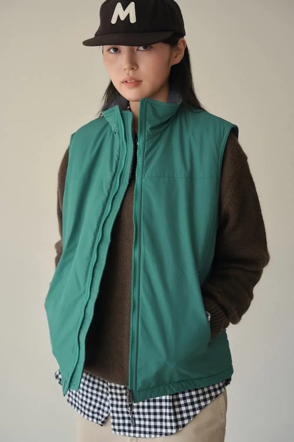 레이어링을 위해서는 또 필요한 것은 중간 아우터다. 그중 가장 활용도가 좋은 것은 베스트. 가을에서 겨울로 넘어가는 간절기에는 입던 가을 옷 위에 베스트만 걸쳐도 따뜻하고, 본격적으로 추워질 때는 패딩, 코트 같은 최종 아우터 직전에 입으면 보온성이 극대화된다. 몇 년 전 정장을 주로 입는 직장인이 교복처럼 입던 경량 패딩 베스트를 떠올리면 된다. 여기에서 주로 무채색인 경량 패딩 베스트에 아쉬움을 느낀다면 브루먼의 플리스 신슐레이트 베스트는 좋은 대안이 될 수 있다.