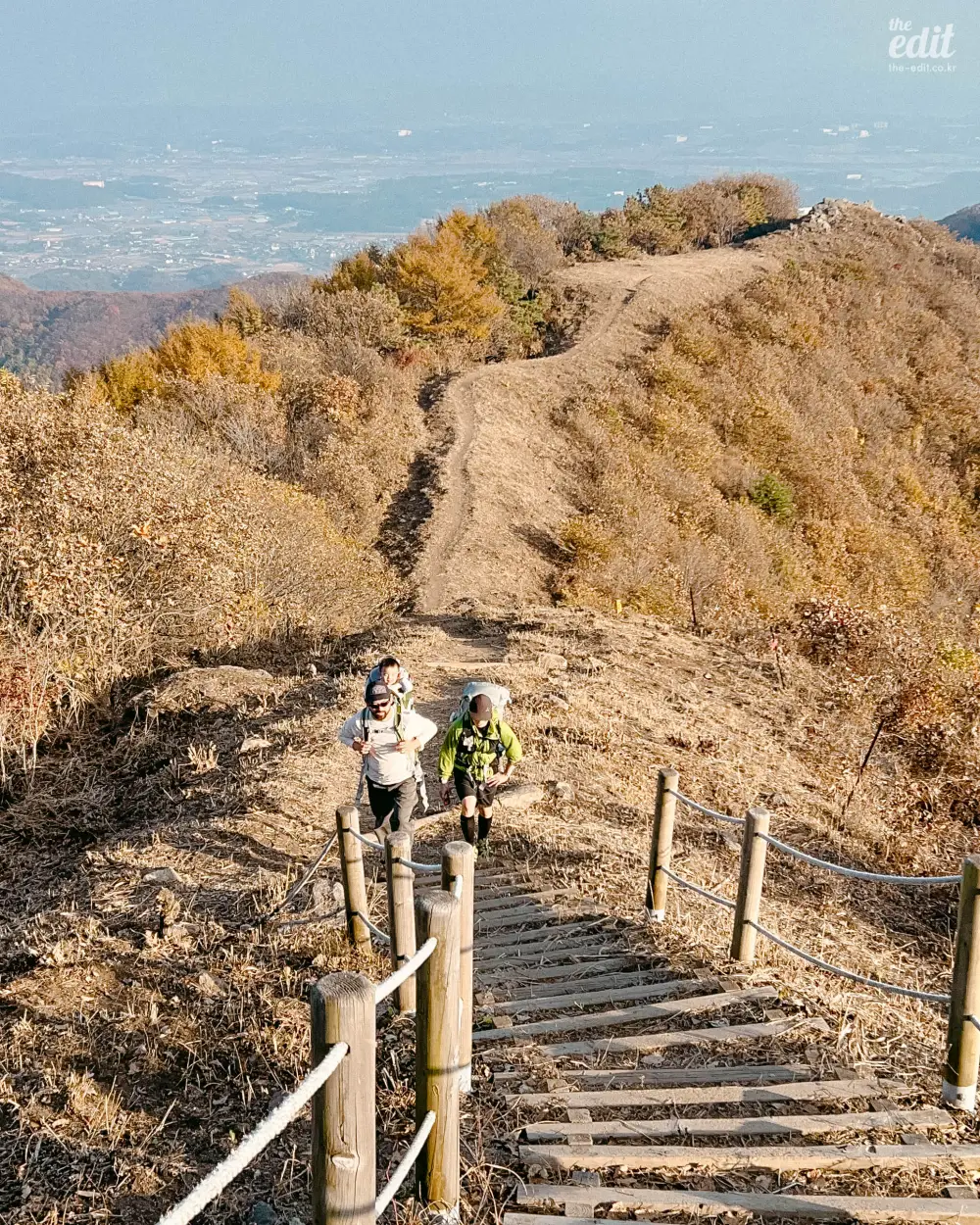 이천과 여주 광주시에 걸쳐 있는 고도 564m의 산. 정상까지 약 6.5km, 1시간 정도 소요된다. 아기를 멘 내 기준이고 트래킹에 익숙한 사람은 훨씬 더 빨리 오를 수 있는 난이도. 초반 10분의 급경사 구간 이후에 억새밭 능선을 따라 걸으면 된다. 정상을 지나쳐 천덕봉까지 조금만 더 걸어가면 박지가 여럿 나온다. 규모도 꽤 크다. 원적봉에서 천덕봉으로 이어지는 능선은 걸으면서도 감탄이 나온다. 사방으로 탁 트여 속이 다 시원하다. 해질녘이 특히 아름답다.
