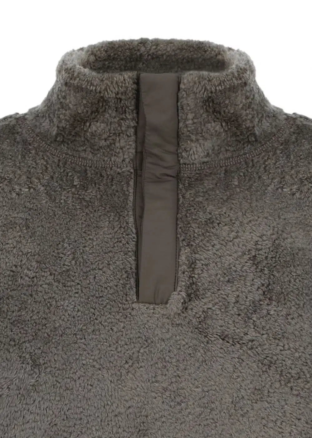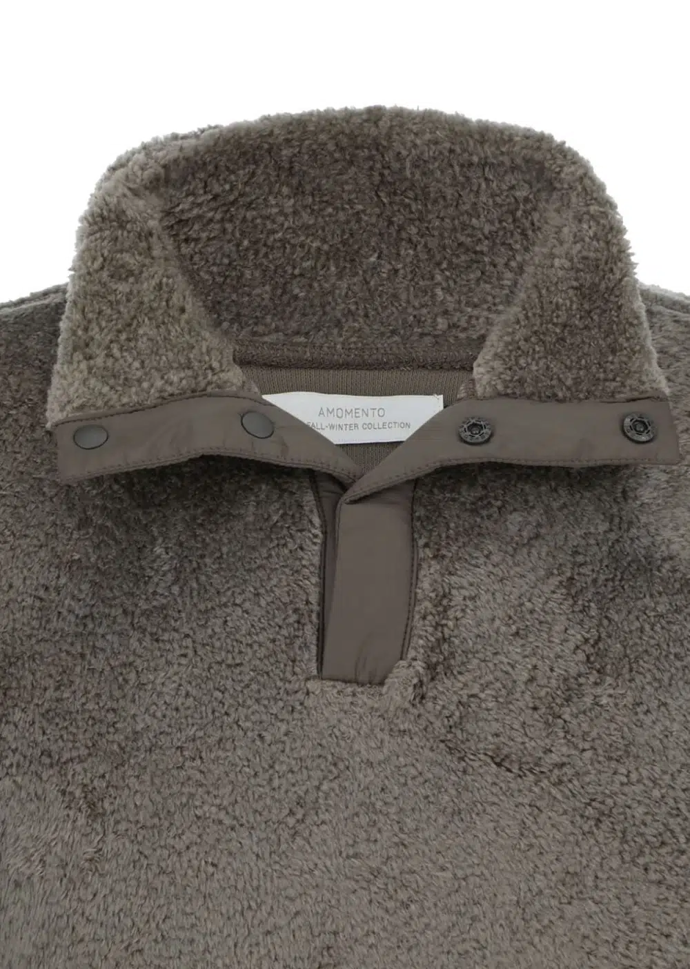 아모멘토의 플리스는 일본에서 생산한 파일 원단으로 벨벳 같은 고급스러운 질감이 특징이다. 목 근처의 히든 스냅 버튼부터 옷 전체가 같은 톤인 것까지 차분하고 우아한 분위기다. 아웃도어 스타일링보다 핀턱 팬츠에 로퍼나 보트 슈즈 등 구두를 매치하면 잘 어울린다.