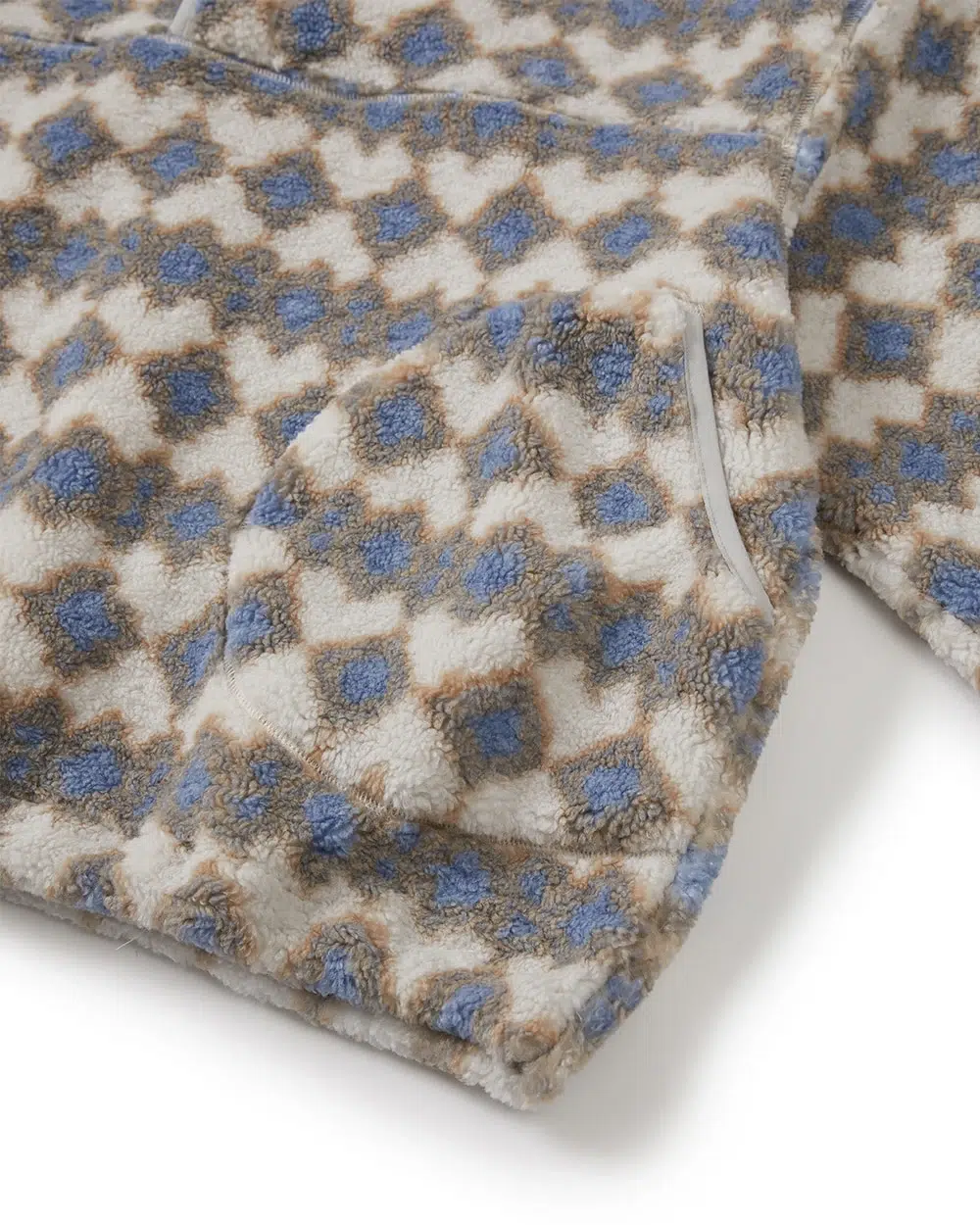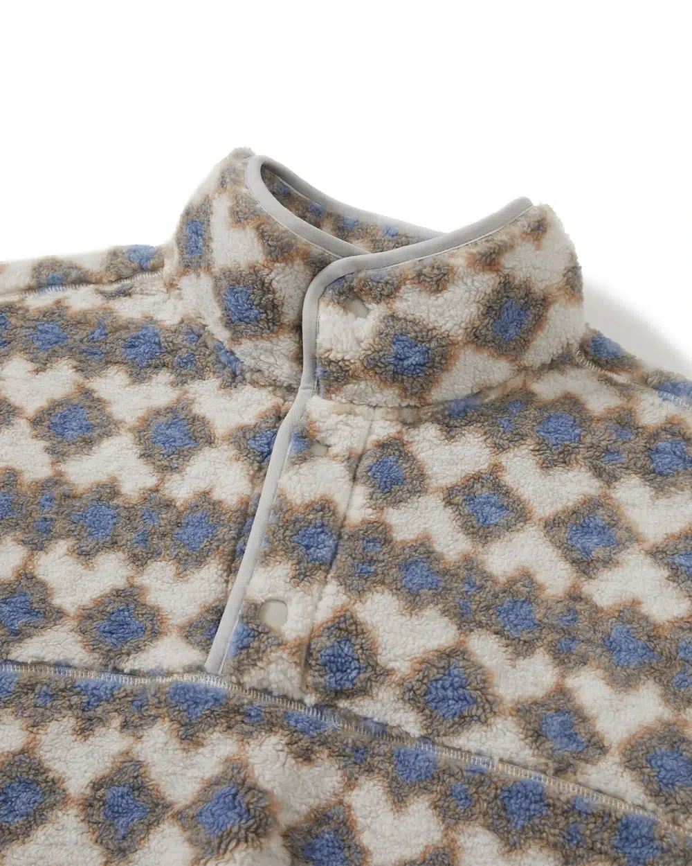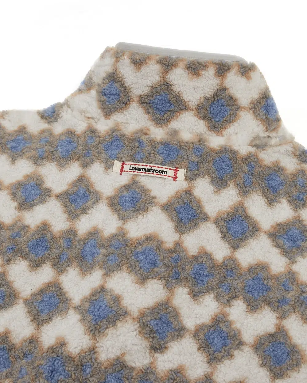 버섯을 비롯한 자연을 테마로 포근한 옷을 만들어온 브랜드 러브머쉬룸의 이번 시즌 플리스. 핑크 플로이드의 노래 ‘Grantchester Meadows’가 떠오른다. 눈 조각이 쌓인 겨울 초원의 이미지가 패턴으로 담겼다. 동그란 포켓과 따뜻한 오트밀 컬러가 귀여운 오버핏 제품으로 밑단을 조여 스타일링을 할 수 있다.