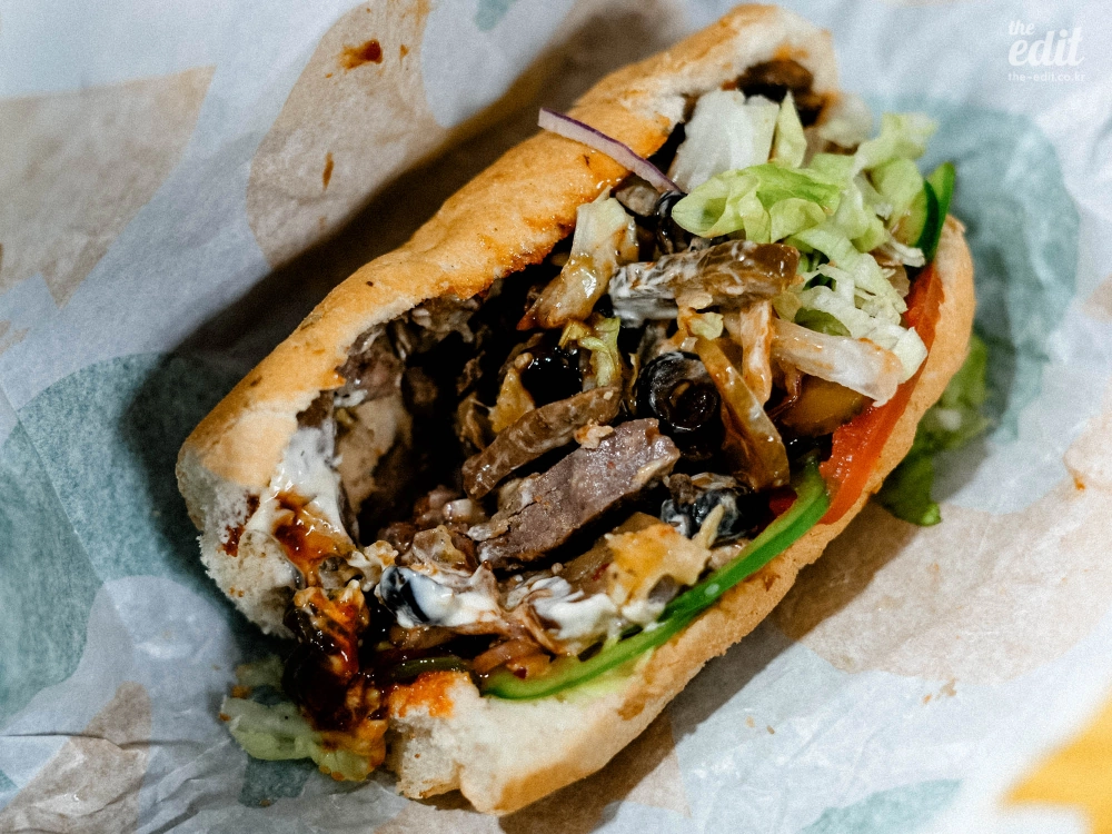 샌드위치 속에 심지가 굵은 고기가 담기니 위트나 그레인처럼 거친 식감의 빵을 좋아한다면 입안에서 오래오래 질겅질겅 씹어먹는 샌드위치의 희열을 느낄 수 있다. 여러 가게를 돌며 직원 추천 소스 조합을 물어봤는데, ‘랜치 + 스위트 칠리’가 가장 많이 언급됐다. 자기주장이 뚜렷한 소스를 여러 가지 넣는 게 맛있다는 게 공통적인 의견이었다.