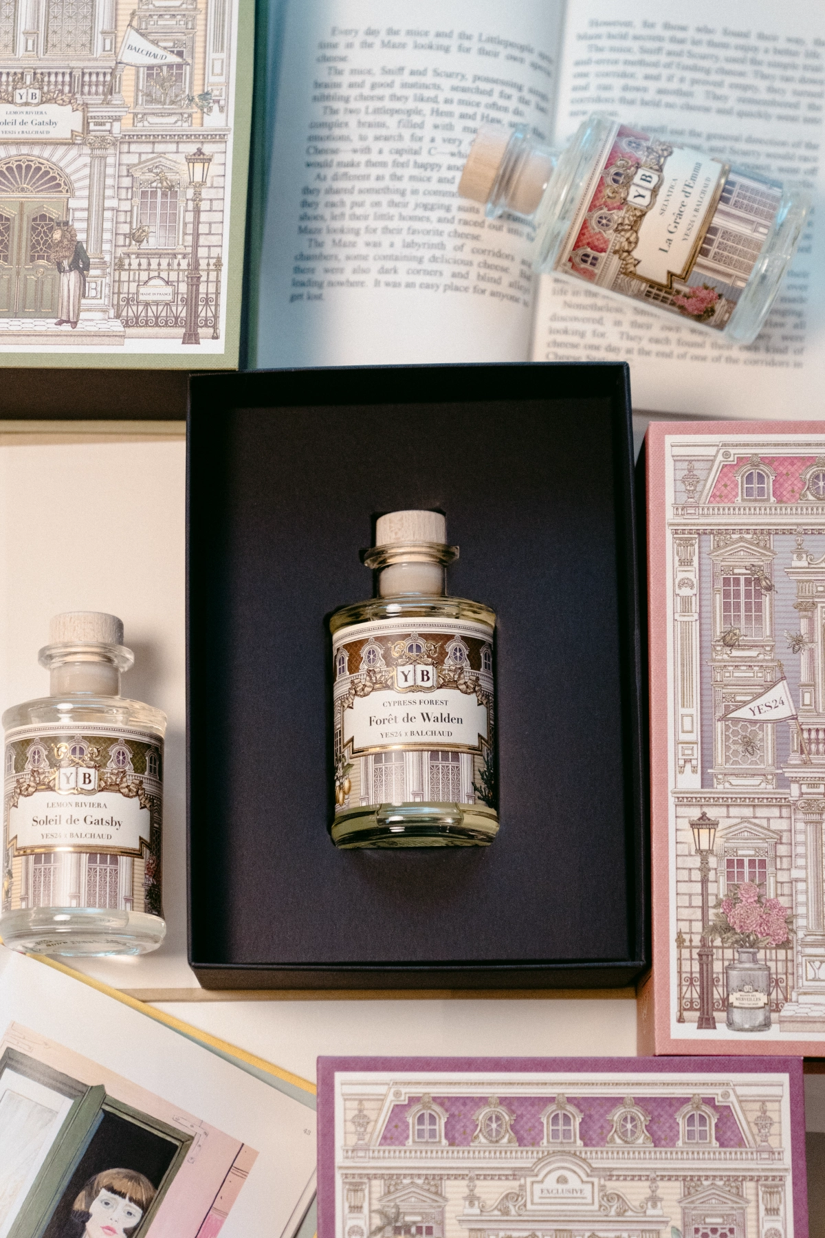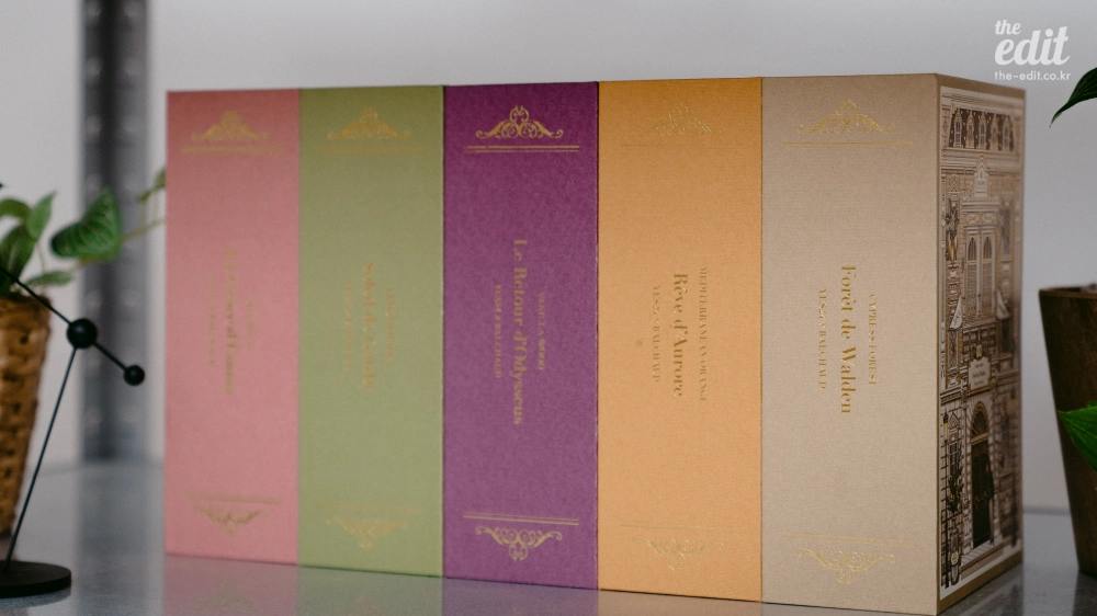 커다란 양장본 책처럼 생긴 패키지 안에는 프랑스 프리미엄 향기 브랜드 ‘발쇼(Balchaud)’와 협업하여 만든 향들이 담겨있다. ‘문학이 깃든 향기’라는 콘셉트 아래, 각각의 고전 문학 서사를 표현한 5가지 향을 만들었다고. 이야기가 담긴 향이라니, 책을 읽을 때도 잘 어울리지만 내 일상에 스며들었을 때도 너무나 매력적일 것 같다. 원래 영화 OST를 출근길에 듣는 마음도 그런 거잖아. 내가 아는 그 이야기의 주인공이 내가 된 듯한 기분을 누리는 마음. 아무튼 2026년 독서광(이 될 예정)인 나이기에, 설레는 마음으로 5가지 향을 내 작은 공간들에 풀어 두었다.