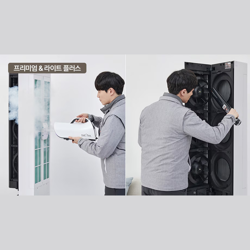 [LG 휘센 에어컨 구독] *구독 사용 후 제품은 고객님의 소유가 됩니다. [LG 휘센 에어컨 구독 케어서비스] *케어서비스 유형은 라이트플러스와 분해세척 두가지 입니다. 라이트플러스는 내외부 기본 세척을, 프리미엄은 분해 세척을 제공합니다. *전문 장비 및 케어제를 활용하여 열교환기, 냉방팬등 내외부를 케어해드립니다. (제공되는 서비스에 따라 케어방식은 상이할 수 있습니다.) *라이트 플러스 케어서비스는 12개월 주기로 제공되며, 기본 세척은 36개월마다 진행됩니다. *방문 일정은 상황에 따라 변경될 수 있으며 방문 전 케어 서비스 매니저가 사전 연락을 드립니다.