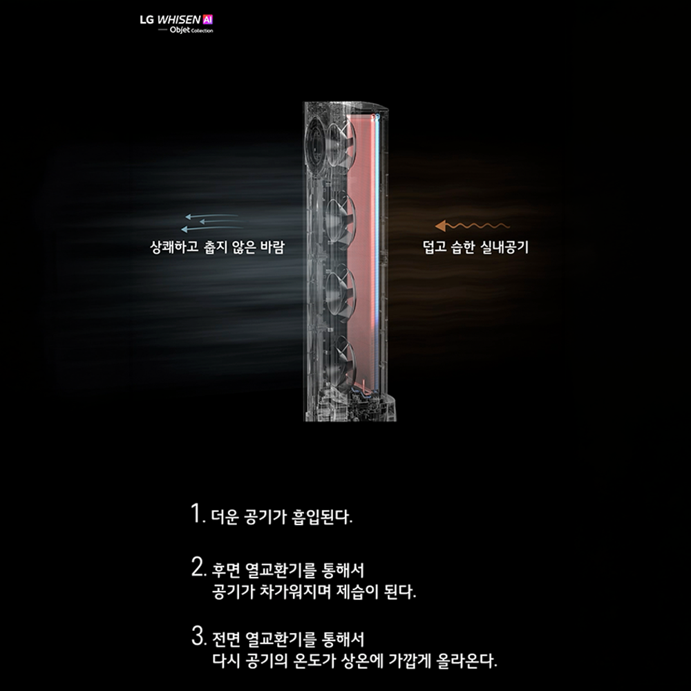이게 어떻게 가능한 걸까? LG전자는 에어컨의 핵심 부품인 열교환기의 혁신을 꾀함으로써 한층 진화한 제품을 개발하는 데 성공했다. 일명 재열‑제습 2단 분할 열교환기(냉매 분리형) 기술. 국내에서는 유일한 기술이라고 하는데, 풀어서 설명하면 다음과 같다.