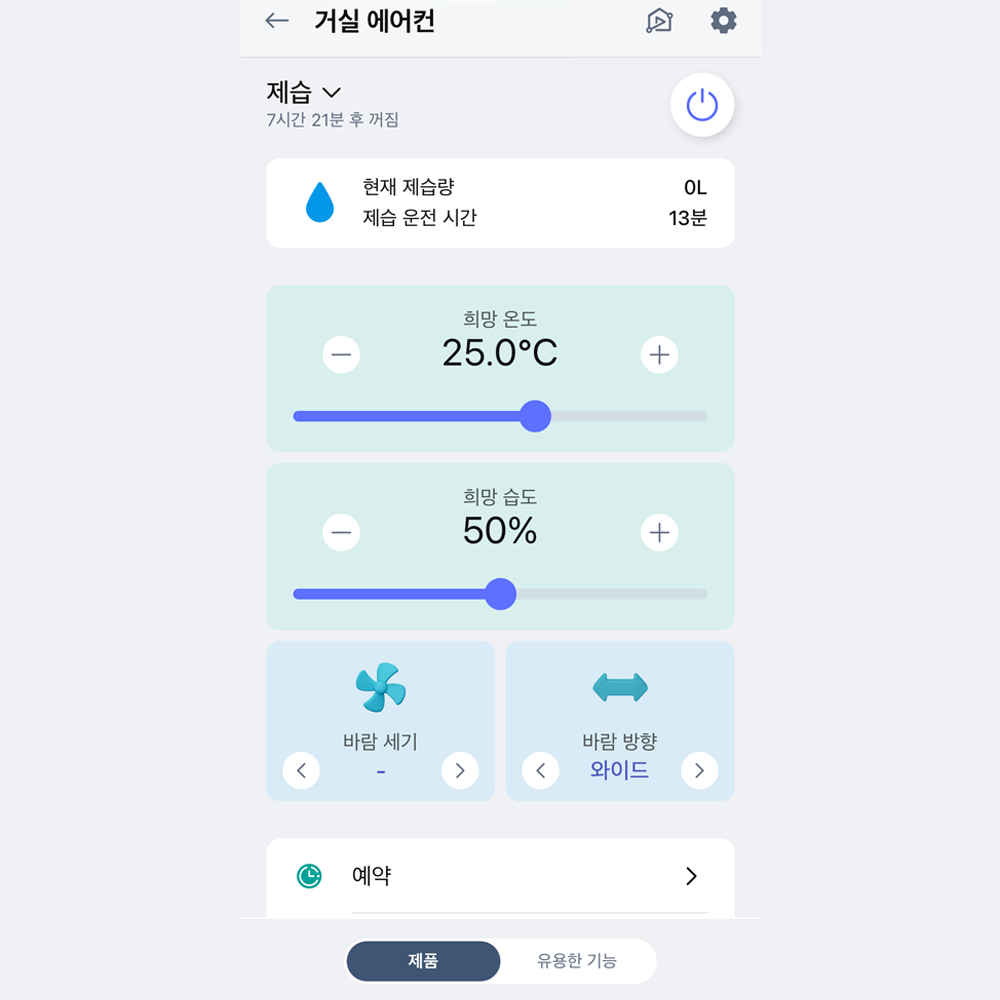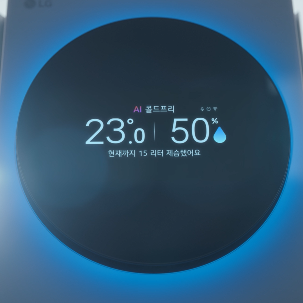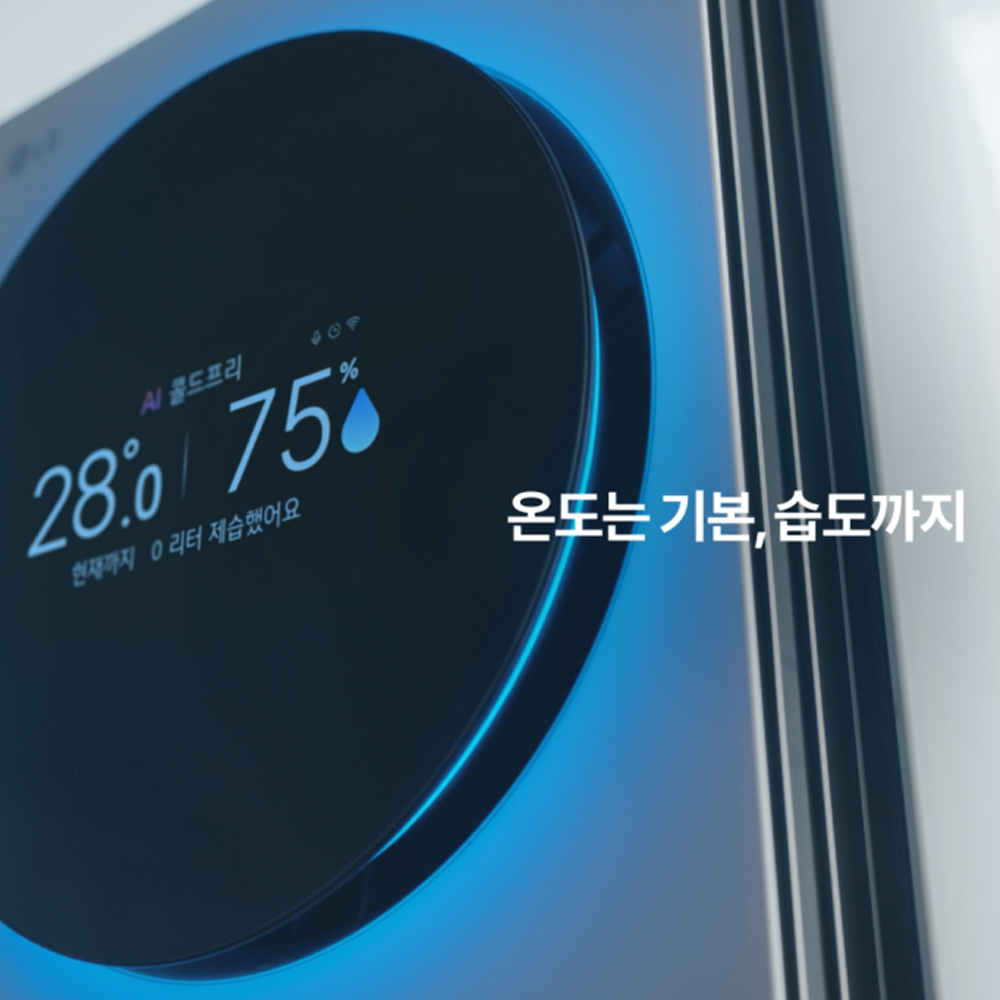 AI콜드프리 기능의 핵심은 ‘정온제습’. 온도를 크게 변화시키지 않으면서 공기 중의 습기만 효과적으로 제거하는 기술이라는 뜻이다. 온도는 18~30℃까지 0.5℃ 단위로, 습도는 30~70% 범위에서 5% 단위로 조절이 가능하다. 한마디로 온도와 습도를 동시에 설정할 수 있다는 얘기인데, 그 안에서도 세밀한 컨트롤이 가능해 내가 원하는 상태를 딱 맞출 수 있다는 점이 흥미롭다. AI가 사용자가 선호하는 온습도를 학습하는 만큼, 에어컨을 사용하면 사용할수록 나에게 최적화된 결과를 받을 수 있다는 점도.