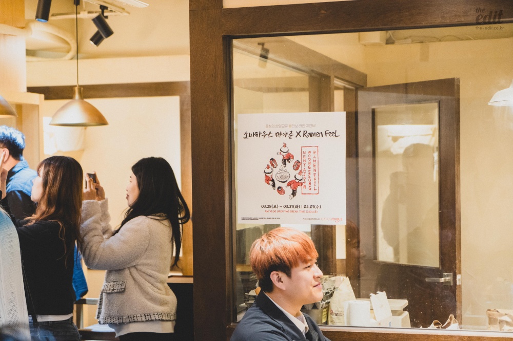 첫 번째 팝업은 제가 오히려 플러팅을 당했습니다. 라멘 티셔츠 입고 영상이나 사진도 많이 찍고 라멘 먹으러 자주 오니까 라멘집 사장님이 저를 궁금해하시더라고요. 다음 날 일정을 물어보고 또 라멘을 먹으러 간다고 하니 자기도 따라다니고 싶다고. 그렇게 대화를 나누다가 한국에서 라멘을 해보자는 얘기가 나왔고, 그게 실제로 이어졌습니다.