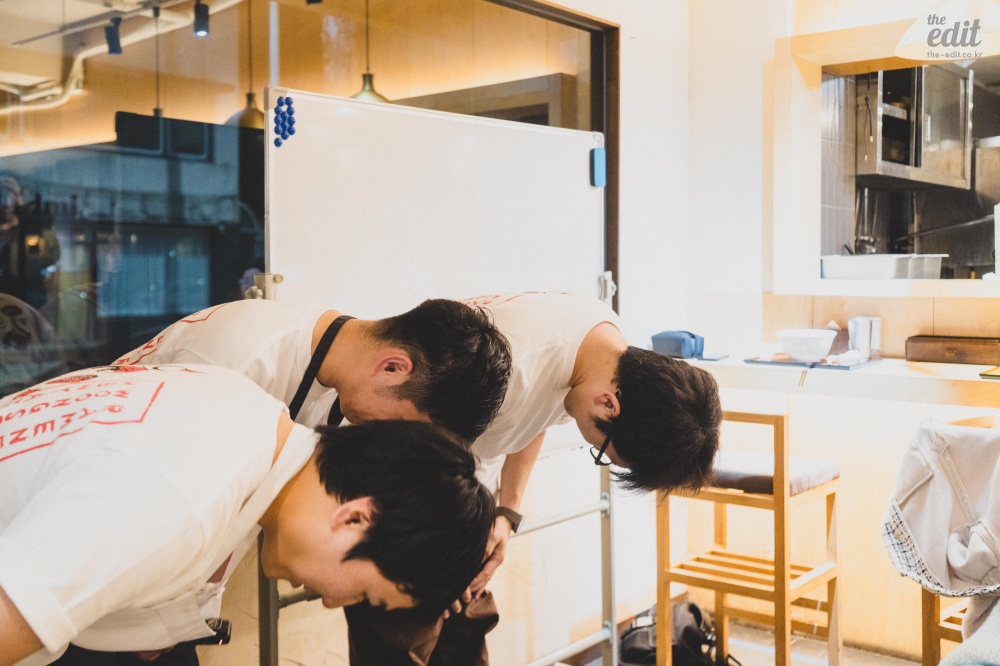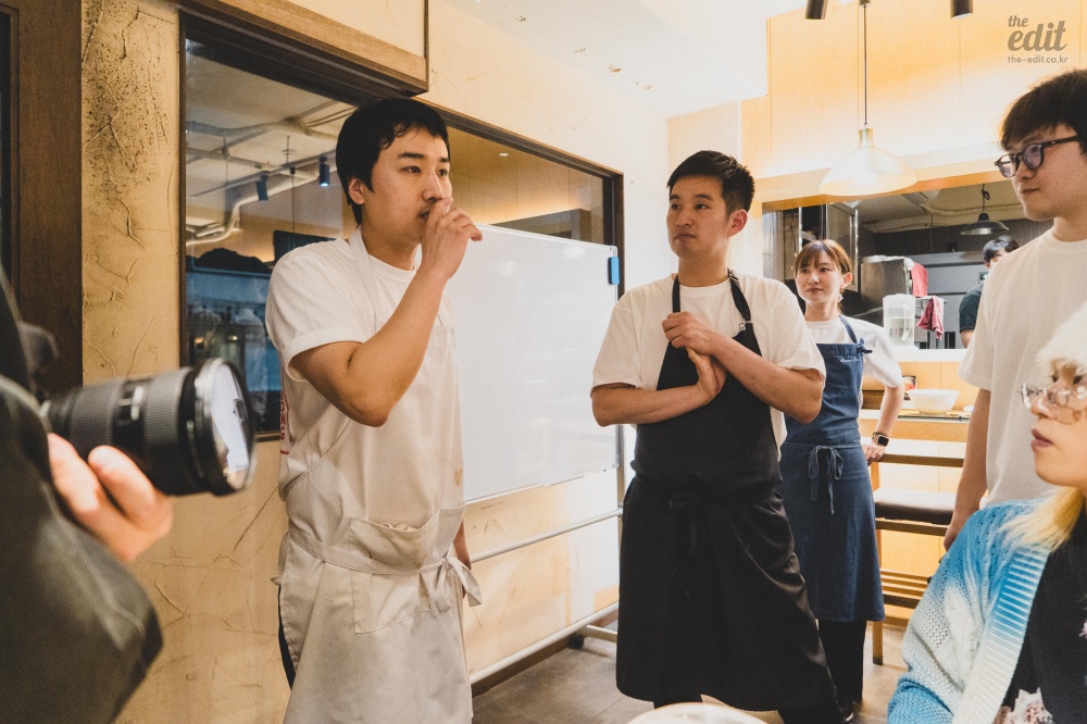 식사를 마친 손님들은 각자의 포토타임을 가진 뒤 하나둘 자리를 떠났다. 다음 손님들이 입장하기까지 약 10분 정도의 여유가 생겼고, 짧은 인터뷰를 진행하기에 충분한 시간이었다. 장소는 제면실 바로 옆 2인석.