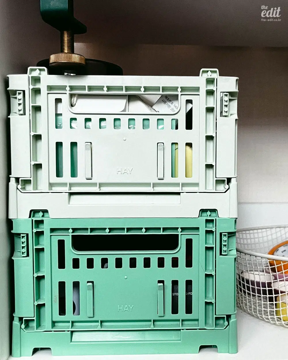 정리 정돈의 핵심은 결국 ‘나중에 다시 찾기 쉬운가’에 있다고 생각한다. 그런 면에서 이 제품의 가장 큰 장점은 내부가 적당히 비친다는 점이다. 불투명한 박스 속에 무엇을 넣어두었는지 잊고선 매번 헤맬 필요가 없다. 밖에서 슬쩍 훑어보기만 해도 내용물을 단번에 파악할 수 있기 때문! 사실 비슷한 형태의 폴딩박스는 다이소나 시중에서도 쉽게 만날 수 있다. 하지만 주변 지인들의 평을 들어봐도, 결국 헤이로 돌아오게 되는 건 특유의 감각적인 색감과 견고한 마감 때문이다. 특히 한 브랜드로 수납 시스템을 통일했을 때 오는 시각적 쾌감과 레이어링의 즐거움은 오직 이 제품에서만 누릴 수 있는 특권이기도 하다.