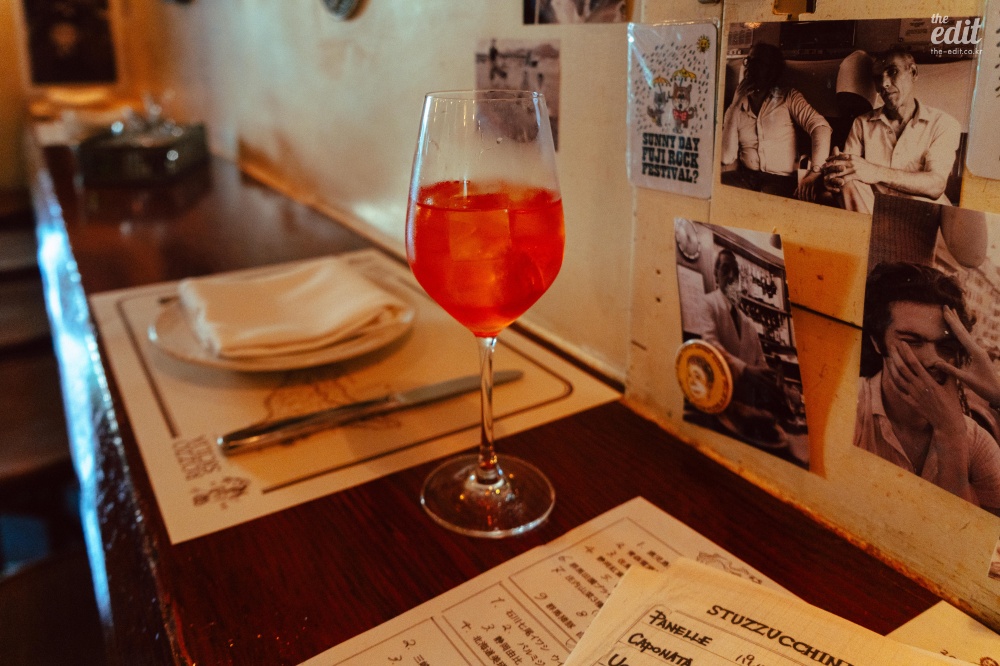 이 곳의 셰프는 시칠리아 팔레르모에서 식당을 한 경험이 있다고 한다. 그래서 식당 곳곳에는 시칠리아의 팔레르모 축구팀의 유니폼이 걸려 있고, 이탈리아 어느 정겨운 동네 술집처럼 정체를 알 수 없는 빛바랜 사진이 붙어 있다. 목재 테이블은 고즈넉하고 주황색 조명은 마음이 편하게 만든다.