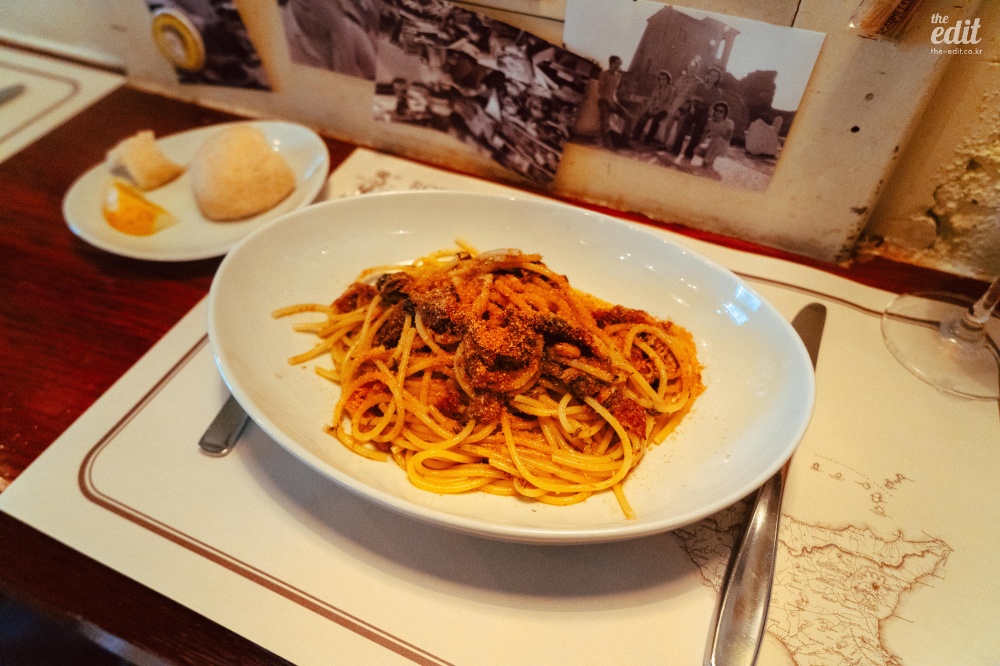 영어 메뉴판이 없어서 우선 아페롤 스프리츠부터 주문했다. “아페롤 스프리츠 있나요?”라고 물으니 당연히 있다는 대답이 돌아온다. 하긴, 이탈리아 식당에서 아페롤 스프리츠를 파는 건 한식당에 소주가 있는 것처럼 당연하지. 파스타 메뉴는 별로 없었는데 정어리파스타가 있었다. 시칠리아 한 달 살기를 한 게 벌써 7년 전이고 그 후로도 파스타를 엄청 먹으러 다녔다. 로마, 파리, 도쿄, 후쿠오카 그리서 서울, 부산까지. 그런데 정어리파스타를 파는 곳은 시칠리아 이후로 처음이다. 살면서 두 번째 정어리 파스타를 도쿄에서 먹다니…