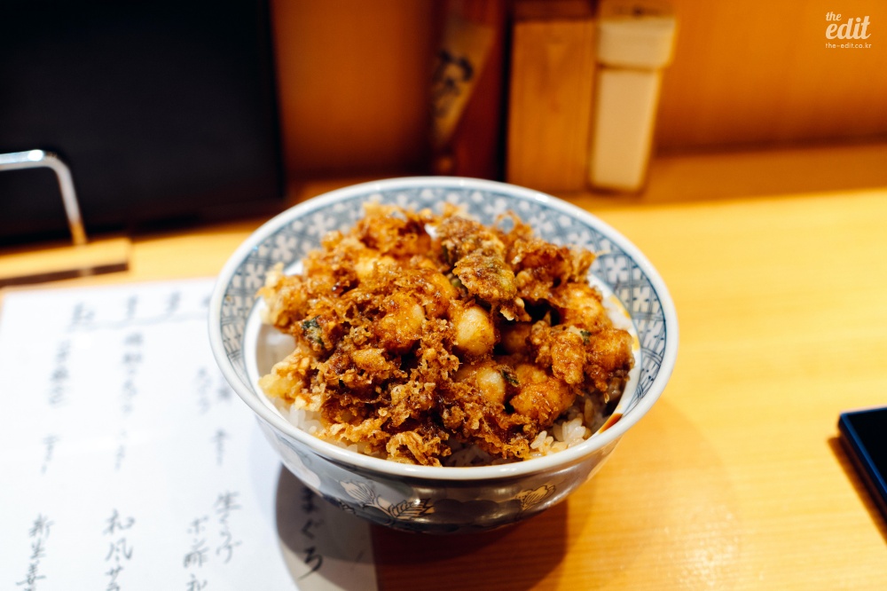 한국으로 치면 덮밥인 ‘OO동’은 많이 먹어봤다. 새우가 올라간 에비동이나 가츠동, 텐동 같은 것들. 그런데 카키아게동은 처음이었다. 카키아게동은 새우나 채소를 한 입 크기로 먹을 수 있게 잘게 토막내서 한국의 야채튀김처럼 뭉쳐서 튀긴 걸 밥 위에 올린 음식이다. 야채튀김과 다른 점이라면 살짝 엉겨 붙은 느낌이라 숟가락으로 쉽게 끊어서 먹을 수 있게 되어 있다는 것. OO동을 그리 좋아하지 않았던 이유는 먹기가 불편했기 때문이다. 특히 에비동 같은 건 걸리적거려서 귀찮았다. 좀 편하게 먹을 수 없을까? 생각했는데 카키아게동이라는 게 있는 줄은 이번 여행에서 처음 알았다. 이 곳 역시 미쉐린 빕구르망에 오른 곳으로 대부분의 미쉐린 식당들이 그렇듯 외국인 관광객이 많은 편이다. 셰프의 요리철학이 흥미로웠다. “최고급 음식을, 삼류 가격에 내어라” 확실히 최고급이라 해도 될 정도로 맛있다. 예약은 필수다.
