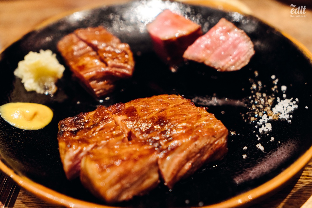 도쿄에 가면 야키토리를 꼭 한 번은 먹는다. 특유의 고독한 분위기를 좋아한다. 하이볼 한 잔 시켜놓고 셰프가 알맞게 구워주는 닭꼬치를 하나씩 먹는 그 재미는 아는 사람만 안다. 야키토리로 쉽게 배가 불러지지도 않으니 천천히 즐기기도 좋다. 하지만 토리시게는 조금 다르다. 일단 매장이 조금 큰 편이고, 근처 직장인들의 아지트인 듯 시끌벅적하기도 하다. 그리고 무엇보다 양이 엄청 많다. 나는 코스의 절반 정도쯤에 백기 투항을 하고 싶었지만 너무 맛있으니 안 먹기도 힘들었다. 굽기와 속도는 물론 좋고, 친절한 접객과 마무리로 나오는 스테이크와 오차즈케 국수도 훌륭했다. 정말 잘 구운 스테이크였으나 배가 불러서 살면서 처음 스테이크를 남겼다. 데이트 코스보다는 친구끼리 든든하게 먹고 술 거나하게 취하고 싶을 때 가면 좋을 것 같다.