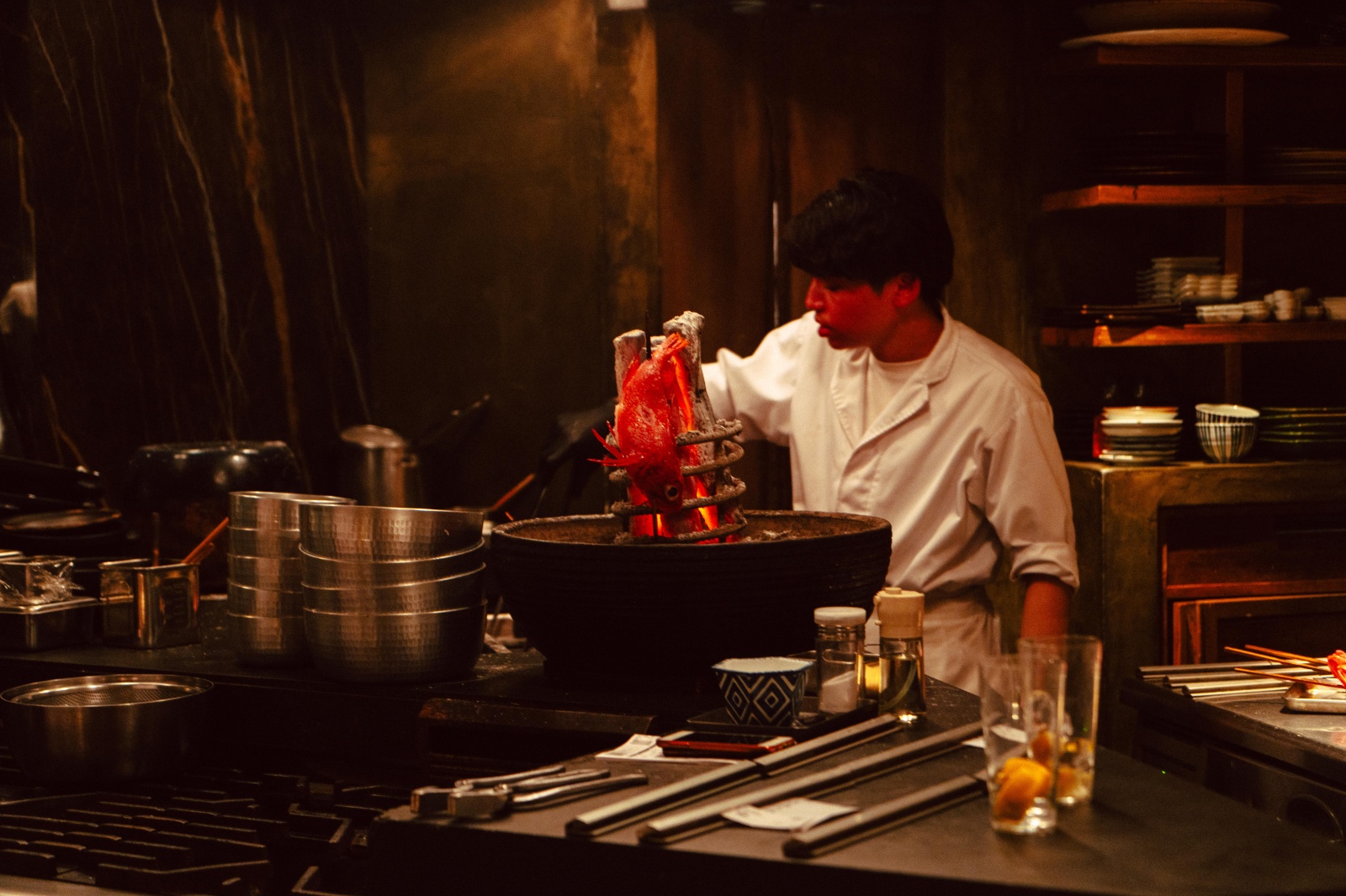 간판도 없고 안내문도 없는 이자카야. 예약한 사람만 받겠다는 의지가 느껴지는 매장 입구. 나도 예약을 하고 방문했다. ‘여기가 입구가 맞겠지?’ 하며 철문을 열고 들어가면 한참 동안이나 직원이 안 보이고, 나무 미닫이 문을 열었을 때 마법 같은 공간이 펼쳐진다. 금주시대의 스피크이지바처럼 문 너머에는 새로운 세계가 펼쳐진 듯하다. 1인 손님은 받지 않으며 대부분 2인 손님이다. 커플로 보이는 손님이 많고, 나처럼 미식 동호회처럼 보이는 손님은 없어 보였다. 코스 가격은 1만 엔. 코스가 하나씩 나오며 슬쩍 불안해졌다. 내가 알고 있는 금액이 맞겠지? 혹시 내가 좀 더 비싼 코스를 주문했나? 이런 생각이 들었다. 전체적으로 다 좋았다. 산초잎, 유채꽃 등 일본의 채소를 적극 활용하기도 하고 양도 충분했다. 뻔하지 않게 코스를 구성하면서도 만족감을 준다는 건 정말 쉽지 않다. 한국에서 먹기 쉽지 않은 향을 지난 채소들를 많이 맛봐서 낯설어서 좋았다. 바 중앙에는 이로리가 있었고 코스 중 하나인 금태가 구워지는 걸 볼 수 있다. 육즙이 가득하고 안까지 촉촉하게 익은 금태를 먹고, 우메슈 소다와리를 마시니 이 순간을 위해 도쿄 여행을 왔구나 싶었다. 단품 추가도 가능하다. 나는 쯔쿠네를 추천한다. 지금까지 내가 알던 쯔쿠네는 바싹 구운 후 달걀 노른자에 찍어 먹는 스타일이었으나 소와도의 쯔쿠네는 노른자 없이 순수하게 쯔쿠네만 즐길 수 있도록 요리되었고, 당연히 그렇게 먹어야 한다는 생각이 들 정도로 고기 자체의 맛이 좋았다. 마지막 코스로는 솥밥이 있기 때문에 든든하게 코스를 마무리할 수 있다. 도쿄에 간다면 무조건 가봐야 할 곳이다.