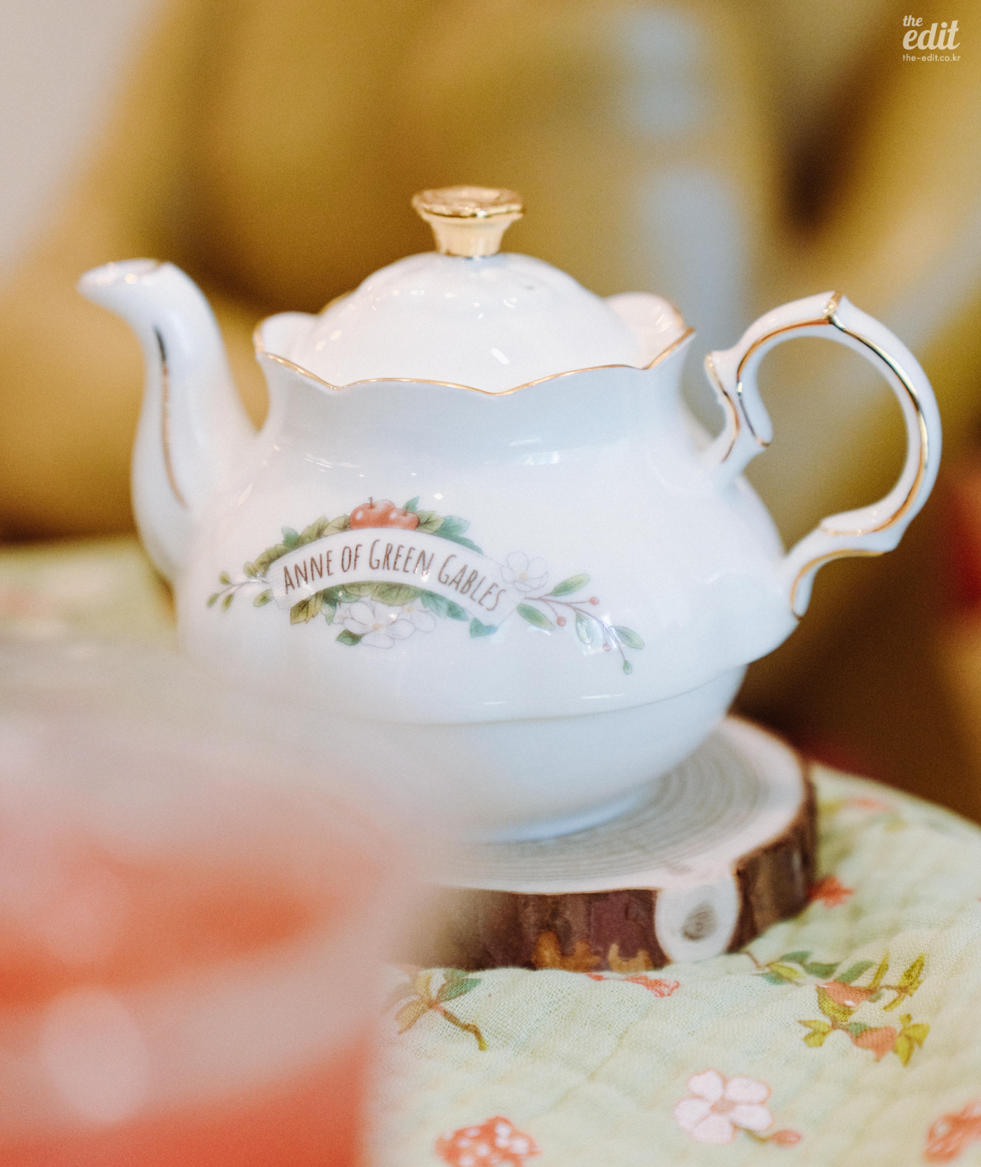 브랜드팀은 고객의 경험이 카페 안에서 끝나지 않고, 일상으로 이어지길 바란 듯하다. 시즌 메뉴와 음료 구매 시 적립되는 스탬프를 모아야 받을 수 있는 굿즈도 앤의 세계를 간접적으로 경험할 수 있도록 꾸렸기 때문이다. 메뉴 5개와 음료 2개 적립 시 증정 되는 사과꽃 모양이 새겨진 에이프런은 초록 지붕 집 부엌에서 앤이 둘렀을 법한 싱그러운 디자인이다. 음료 5개를 더 마시면 티팟 세트를 받을 수 있다. 둘 중 내 눈에 띈 건 티팟이었다. 앤이 살던 시절에도 정말 이런 것을 썼을 것 같은 만듦새라, 여기에 홍차를 따라 마시면 나도 앤의 친구들 틈에 잠시 끼어든 듯한 기분이 든다. 물론 역할이 주인공은 아닐 것이다. 많아야 조금 험상궂은 조연쯤이겠지만. 스탬프 이벤트는 5월 10일까지다. 메뉴를 하나씩 천천히 맛보다 보면, 봄이 가장 짙어질 즈음에는 에이프런과 티팟을 모두 갖게 될지도 모르겠다.