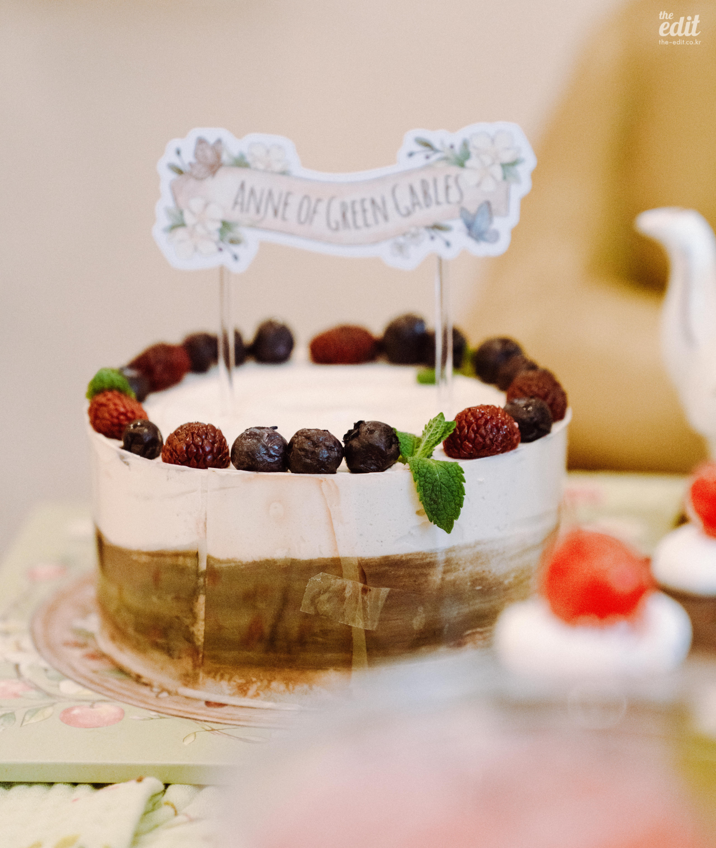 앤의 대표적인 이미지 가운데 하나인 화관 장면은, 그의 상상력과 소녀다운 감수성을 잘 보여주는 대목이다. 그런 점에서 앤이 쓴 화관을 본뜬 ‘플로럴 밀크티 케이크’는 『빨간 머리 앤』 특유의 사랑스럽고 목가적인 분위기를 품은 메뉴다. 특정 에피소드 하나를 그대로 옮겨놓았다기보다, 시즌 메뉴 전반에 흐르는 따스한 감성을 하나로 녹여낸 시그니처 상품처럼 느껴졌다. 주변에 <빨강 머리 앤>의 팬이 있다면, 나는 주저 없이 이 케이크를 선물할 것이다. 밀크티는 첫 입이 가장 맛있다. 하지만 특유의 플로럴한 향 탓에 다소 물릴 수 있다. 그럴 때 위에 얹어진 라즈베리와 블루베리를 하나씩 곁들이면 다시 한 스쿱이 당긴다. 과일과 함께 떠먹으면 한층 풍성한 맛이 느껴진다.