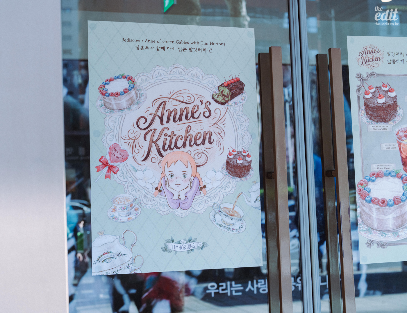 얼마 전 강남에서 그 앤을 다시 마주쳤다. 팀홀튼 선릉역점에서였다. <앤의 키친> 캠페인으로 시즌 메뉴를 선보였다는 이야기인데, 처음에는 ‘둘 다 빨간색이라는 공통점 말고 또 뭐가 있지?’ 싶은 생각이 들었다. 그런데 매장에 놓인 메뉴와 굿즈를 찬찬히 살펴보니, 이해가 됐다. 둘 다 캐나다에서 출발했기 때문이다. 그 공통분모를 바탕으로 팀홀튼이 어떤 방식으로 앤의 세계를 풀어냈는지 궁금해졌다. 알아볼수록 팀홀튼 코리아도 만만치 않게 집요한 집단이라는 생각이 들었다.