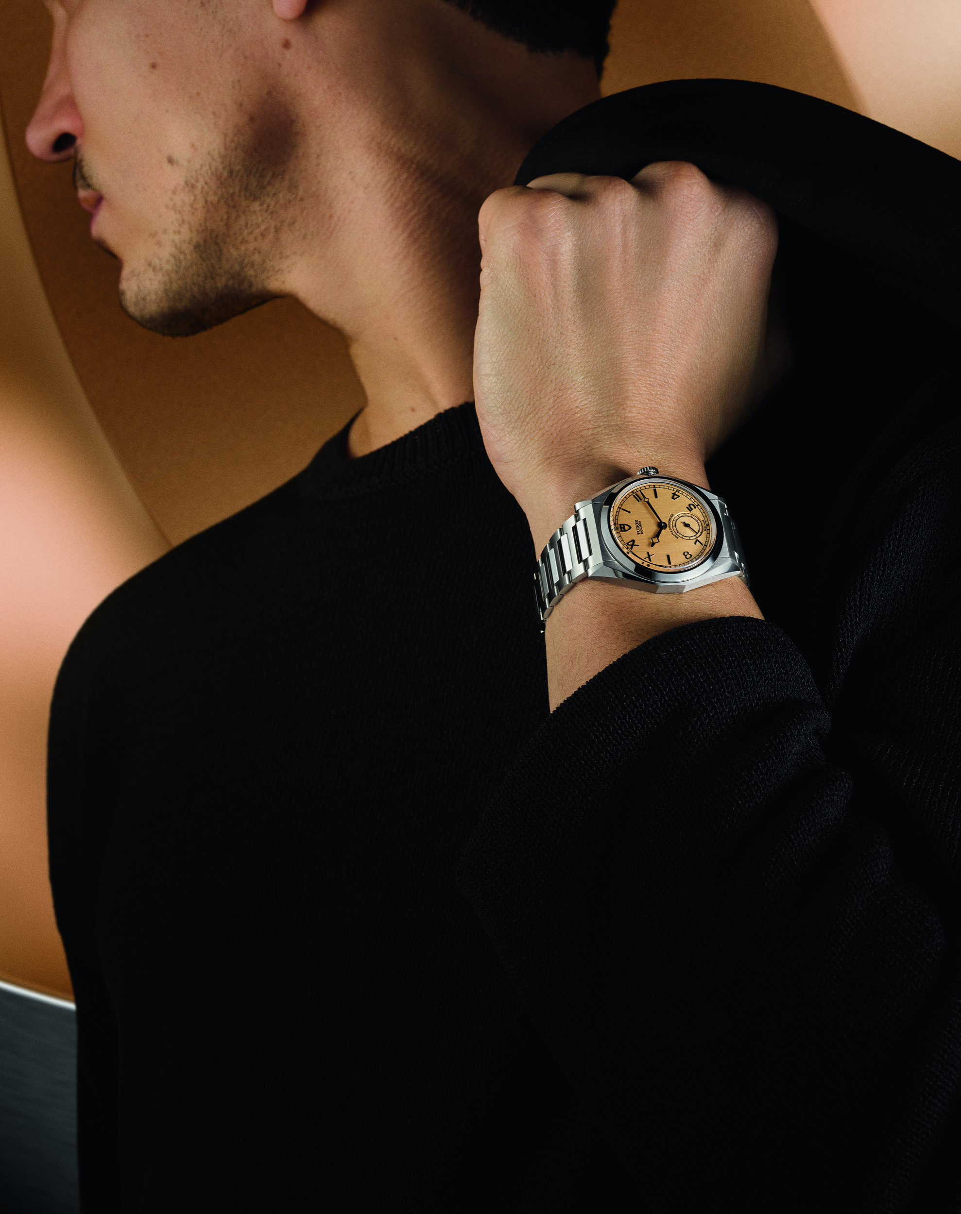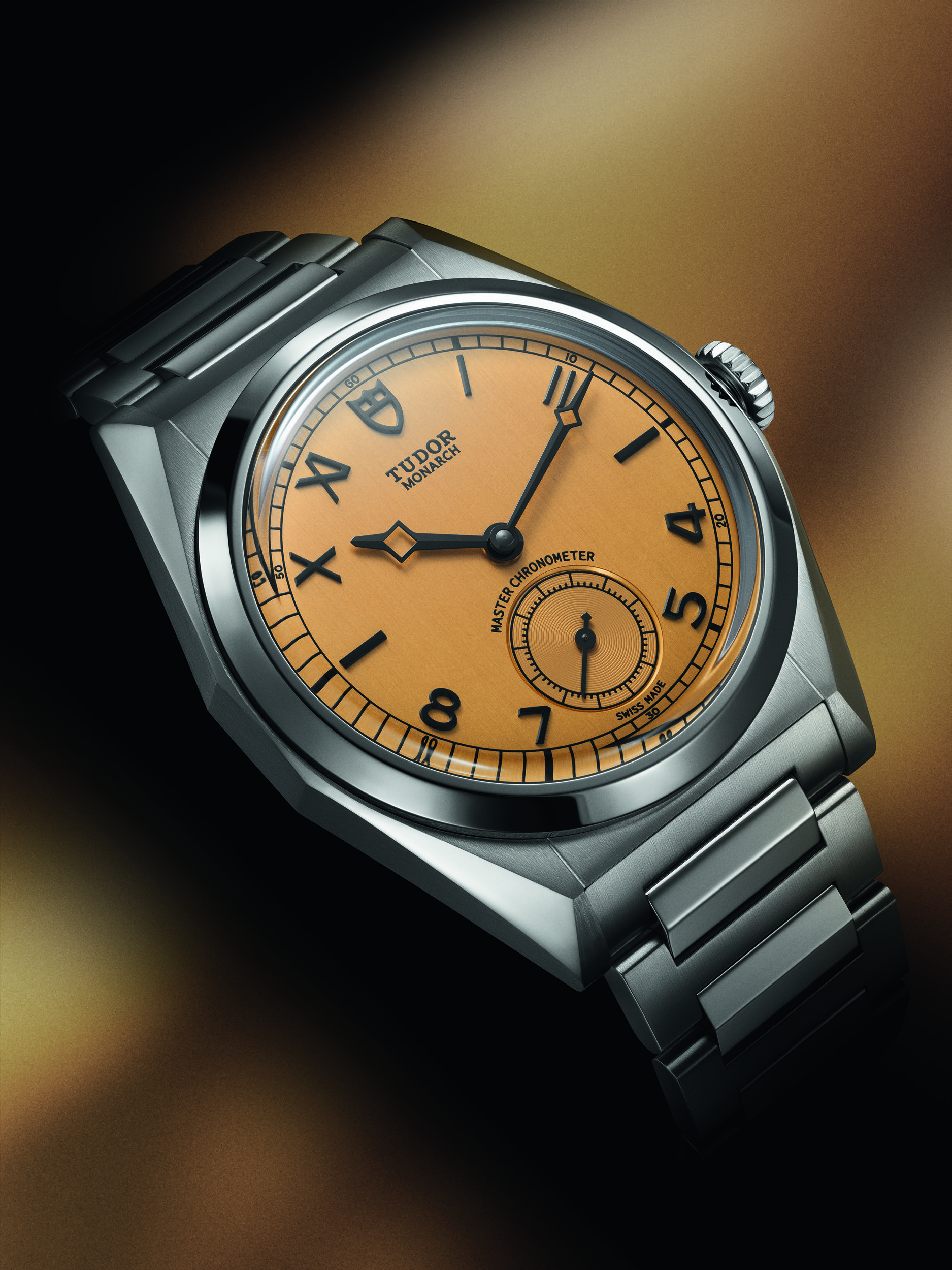튜더의 100주년을 기념해 다시 출시하는 모나크 역시 좋은 예입니다. 모나크는 2000년대 출시했던 시계 라인업에서 이름만 빌려오고 디자인은 완전히 새로 만든 시계인데, 딱 봐도 빈티지한 맛이 가득합니다. 케이스와 브레이슬릿은 마치 일체형인 것처럼 연결되어 있고, 전반적으로 각진 케이스와 윗부분의 숫자를 로마식 표기로 대체한 캘리포니아식 숫자 배치, 그리고 파피루스의 질감을 표현했다는 다이얼 모두 2026년의 시계라고 믿기 힘든 모습을 보여줍니다. 39mm의 현대적인 크기는 조금 예외겠지만요.